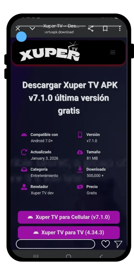 Xuper TV APK descargar gratis es rápido y sencillo. Esta aplicación ligera no suele requerir espacio adicional en tu teléfono. Sigue estos sencillos pasos.